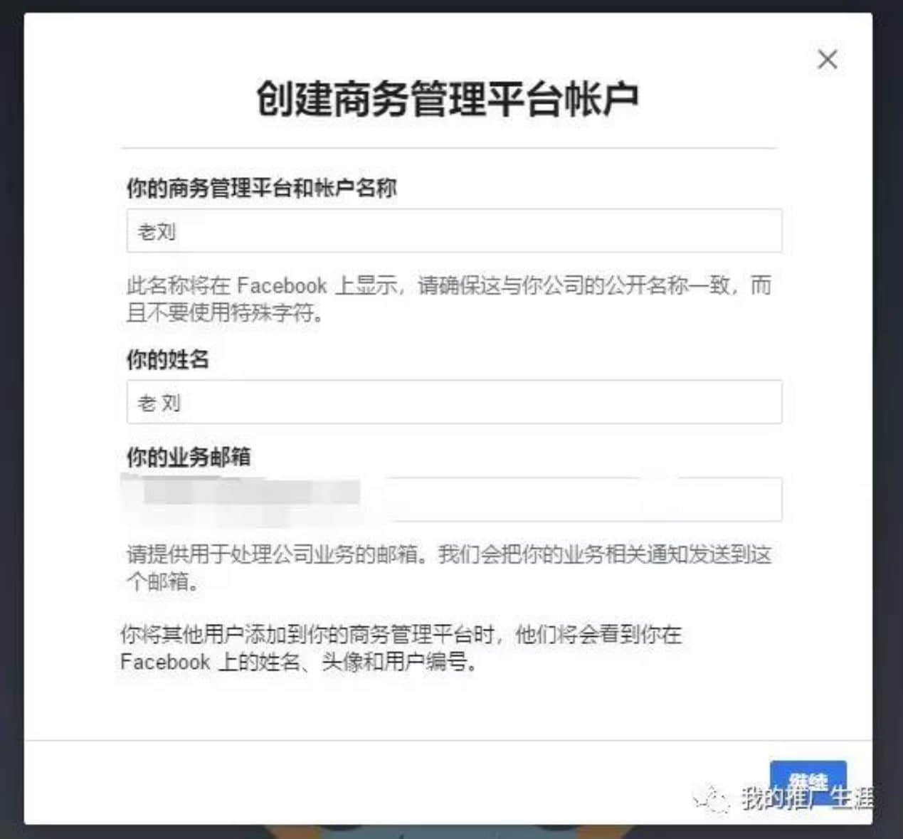 點擊繼續,然后添加你的業務詳細信息,點擊提交 。