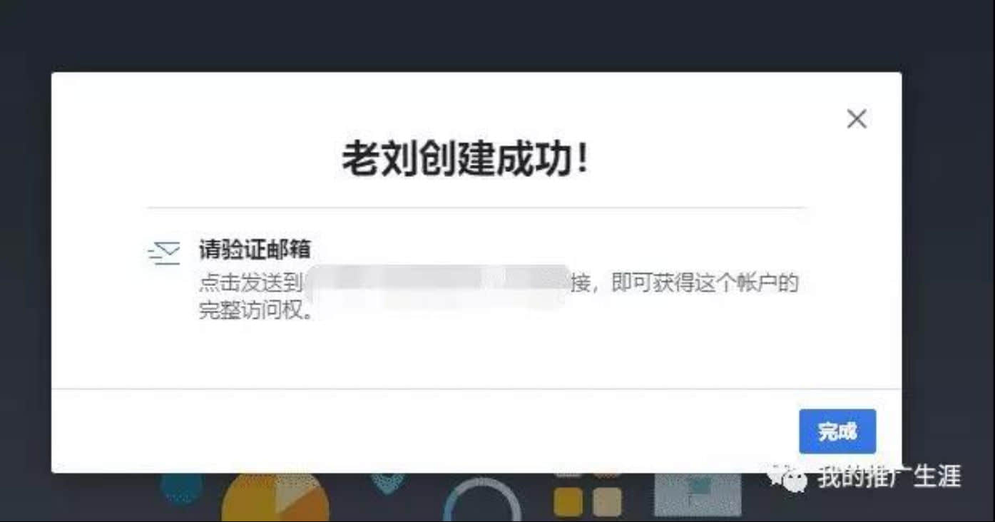 提示就已經創建成功了,然后需要去郵箱去驗證下。