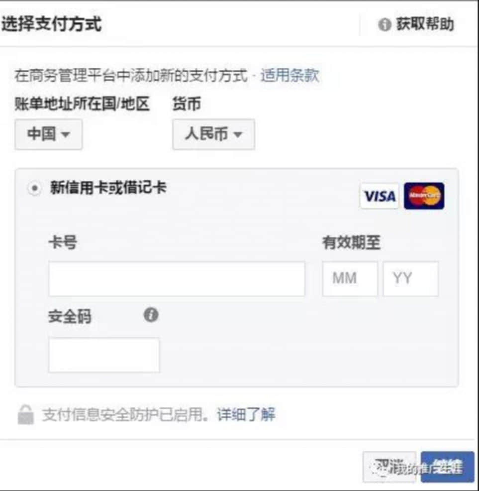 郵件驗證成功后,我們進入商業管理平臺后臺,在跑廣告之前,我們需要完成兩個步驟,一,添加支付,二,添加新的廣告賬戶。