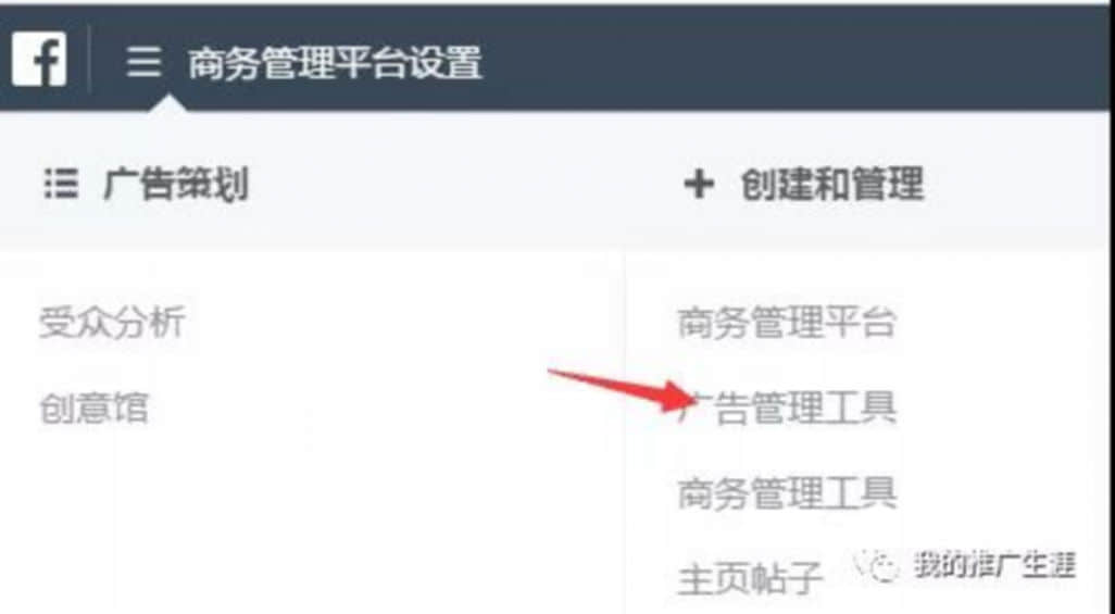 然后點擊“廣告管理工具”,你就可以用剛創建的新的廣告賬戶來跑廣告了。
