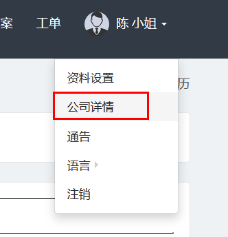 請您登陸盛世傳媒CRM系統,(CRM系統登陸地址及帳號密碼已經發送到您的常用郵箱),登陸進來后,在右上角您的個人中心里面,公司詳情,就可以看到自己網站的后臺與登陸帳號密碼
